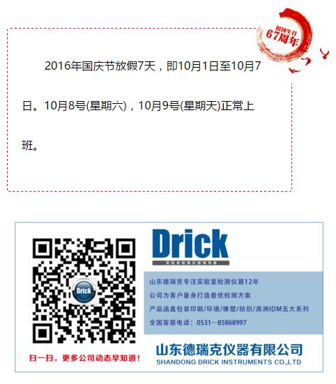 山東德瑞克2016年國慶節(jié)放假通知