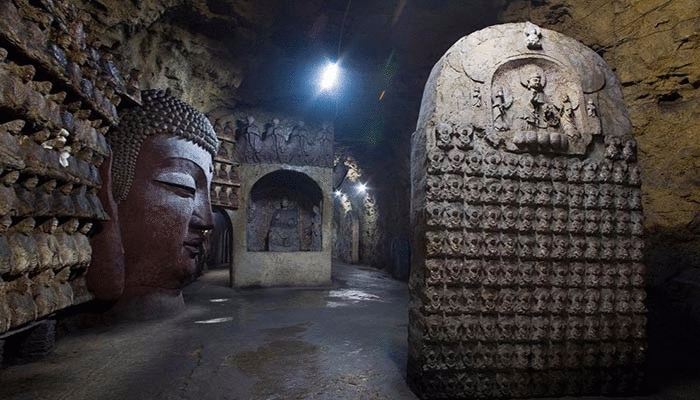 千佛山古稱歷山,因?yàn)楣攀贩Q舜在歷山耕田的緣故,又曾名舜山和舜耕山。隋開皇年間,因佛教盛行,隨山勢雕刻了數(shù)千佛像,故稱千佛山。